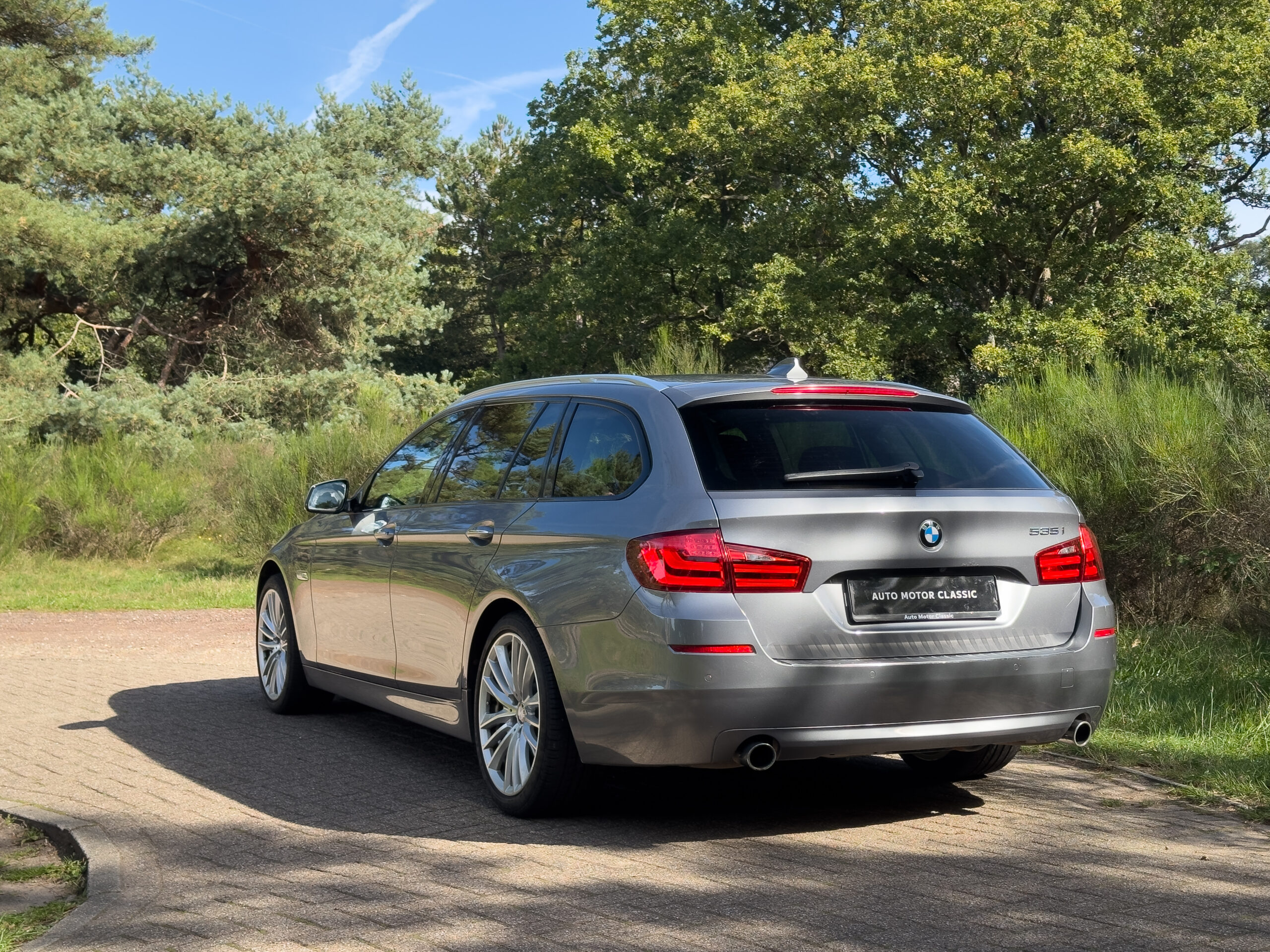 Deze BMW 535i Touring is uitgevoerd met de juiste opties die het rijden dagelijks plezierig maken: comfortstoelen, panoramadak, sportautomaat, meesturende achteras en Apple CarPlay/Android Auto op het originele grote navigatiescherm. Een combinatie van klassieke BMW-rijbeleving en moderne technologie.